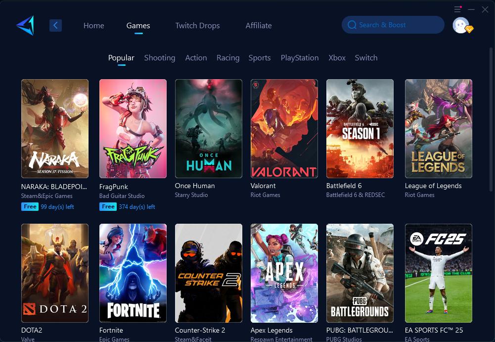 Real users and testers report impressive results: ping drops from 100ms+ to under 50ms even on Wi-Fi, smoother matchmaking, and more consistent performance across platforms. It’s compatible with PC (Windows), mobile (iOS/Android), consoles (PlayStation, Xbox, Nintendo Switch), Steam Deck, and VR devices (Oculus Quest, PICO)—all with simple one-click boosting.